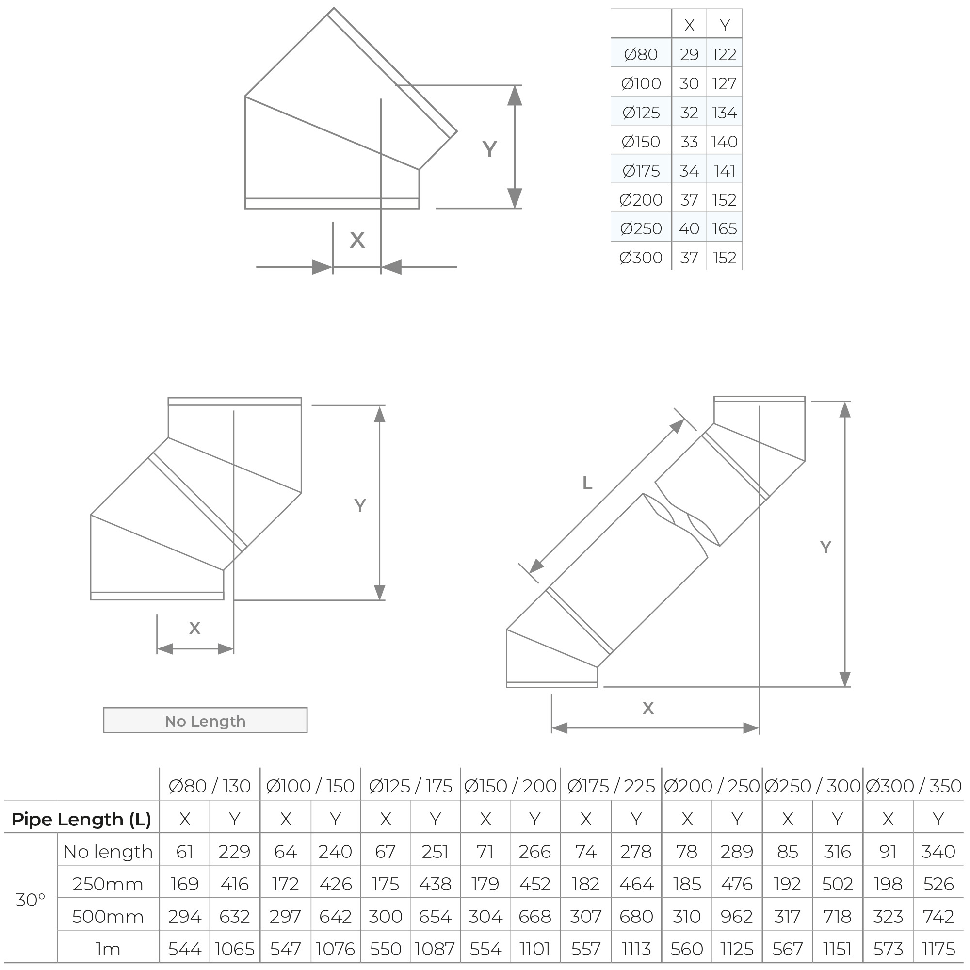 - 2-Segment Design: The 30° Bend Ø 125 features a dual-segment construction, allowing precise adjustments in the chimney direction. For specific offset details, please refer to the dimensions tab.