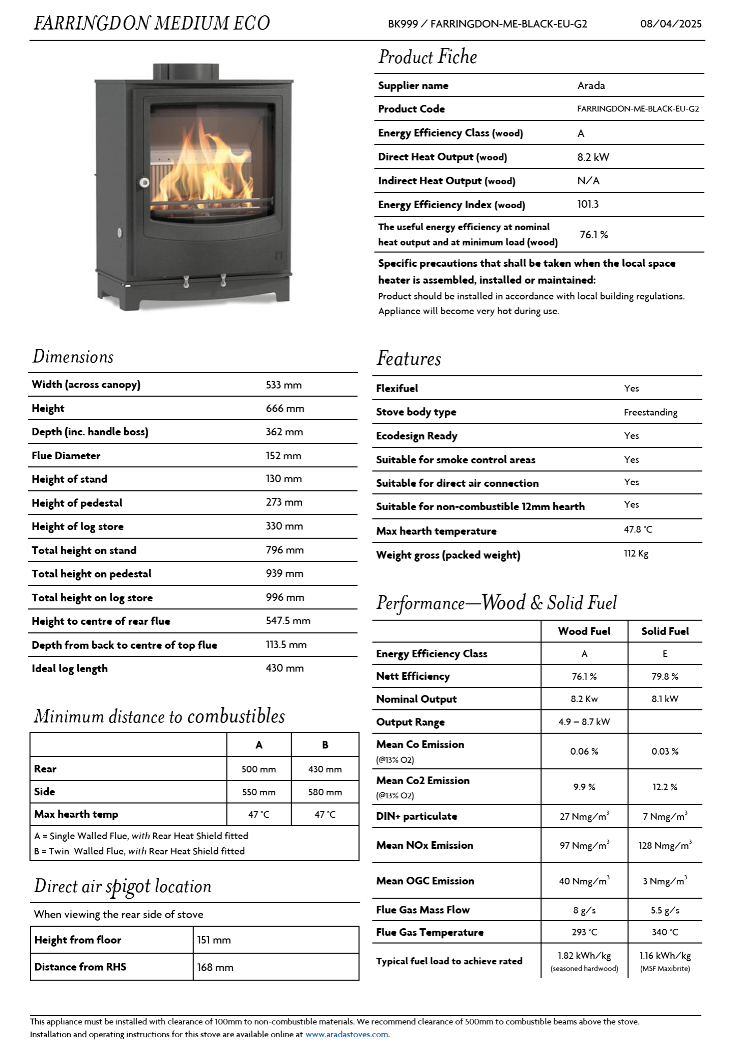 Arada Farringdon Medium 8,2 kW Wood Burning / Multifuel