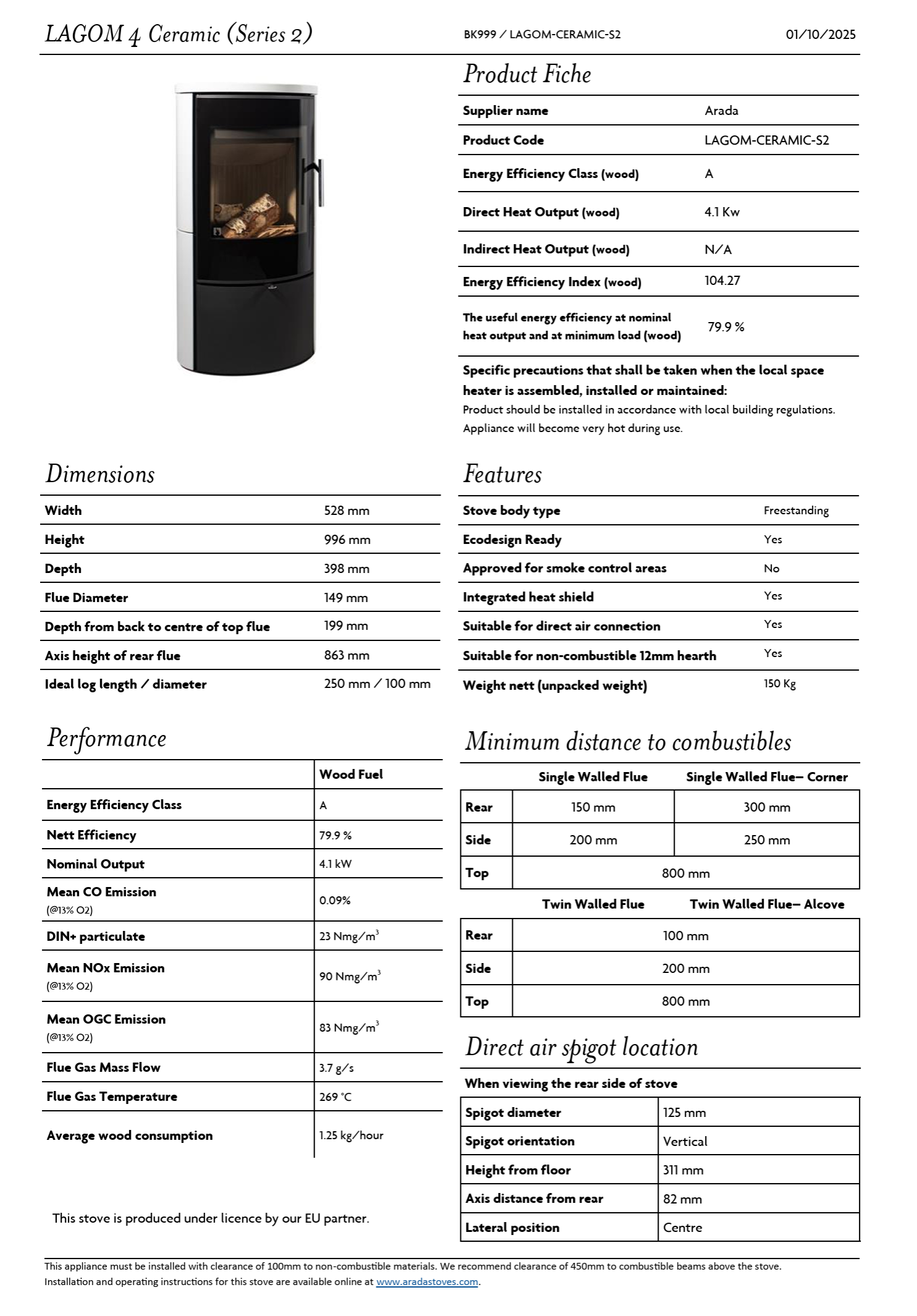 Arada Lagom Ceramic 4.0kW (Series 2) Wood Burning Stove
