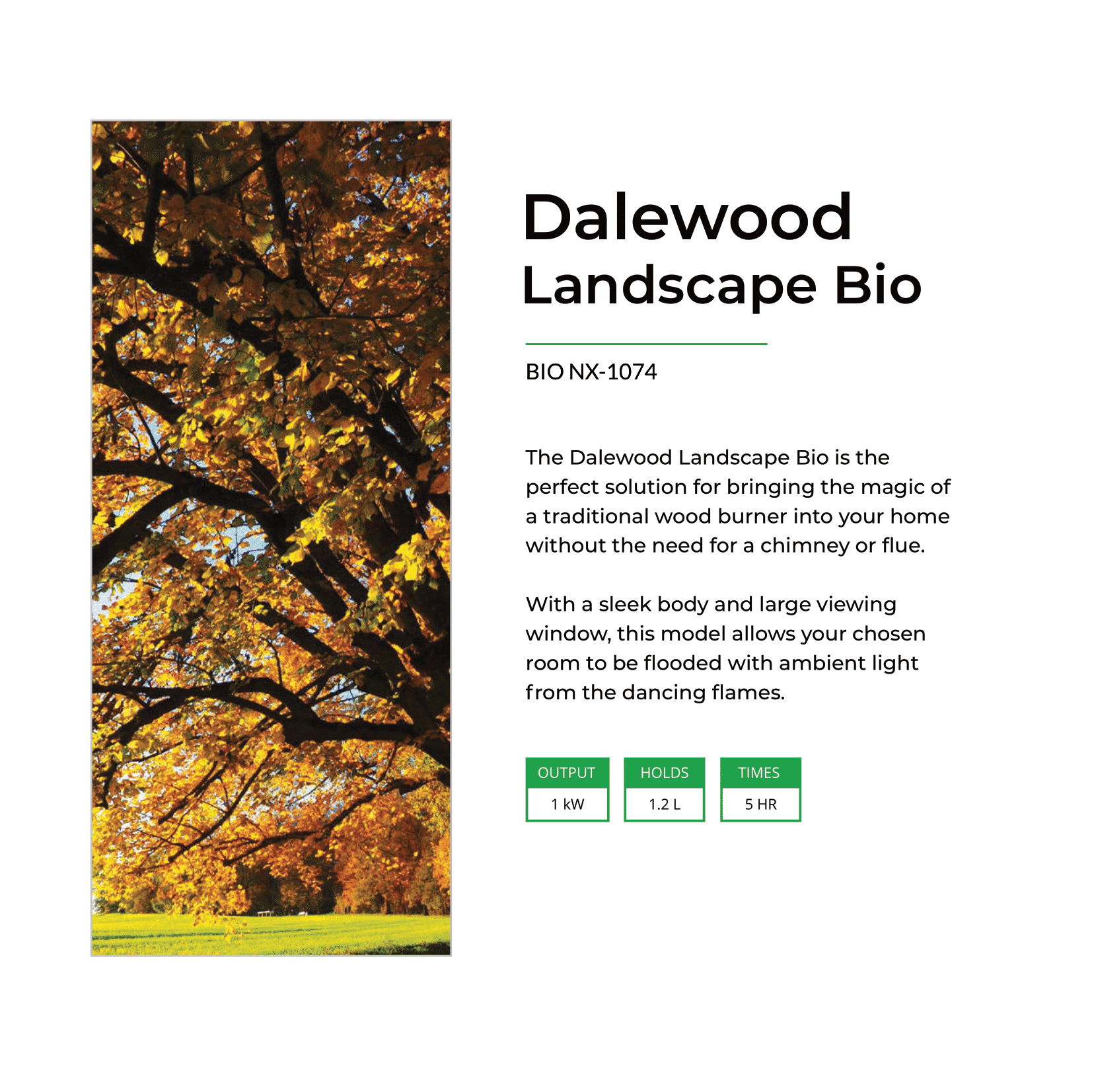Indulge in the beauty of the Henley Dalewood Landscape Bioethanol Stove and let it transform your home into a haven of tranquillity and elegance. Upgrade your living space and ignite your senses with the flickering flames and radiant warmth that only this exceptional stove can provide.