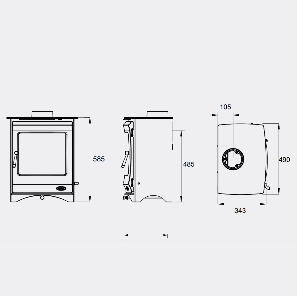 Multifuel Grate: The Elcombe Room Heater comes equipped with a multifuel grate, offering added convenience and versatility in fuel options.