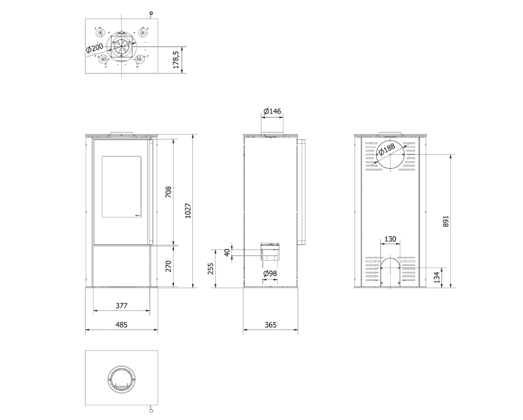 Flue Outlet Diameter (Ø150 mm) – Standard chimney compatibility