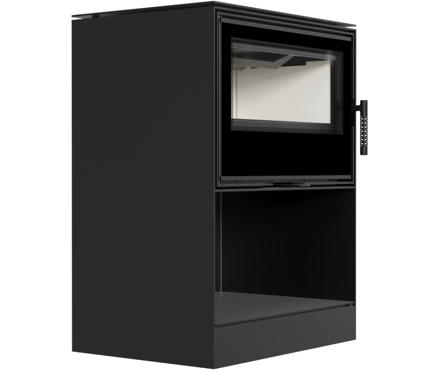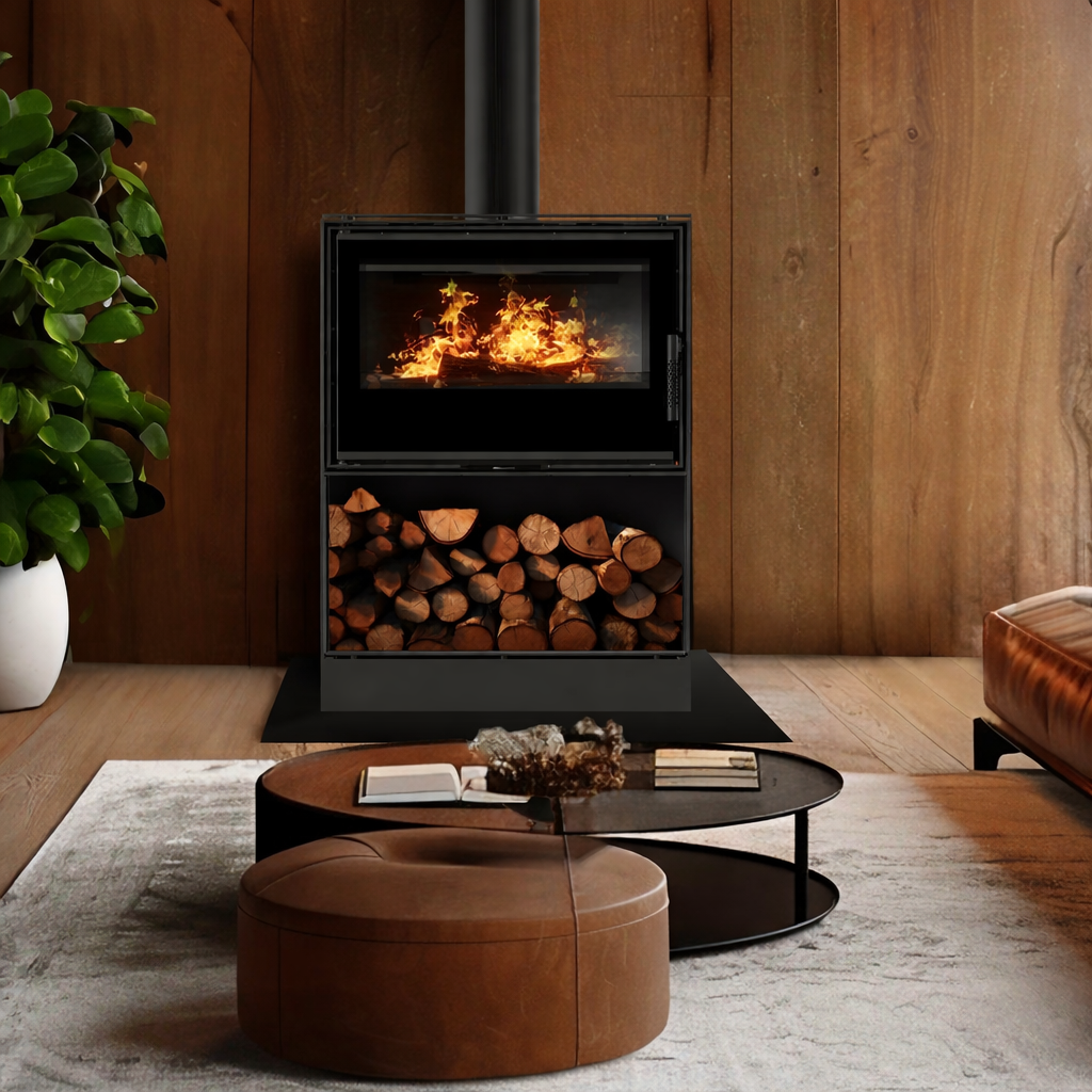 Integrated Log Storage Recess – Practical space for wood storage or decorative use