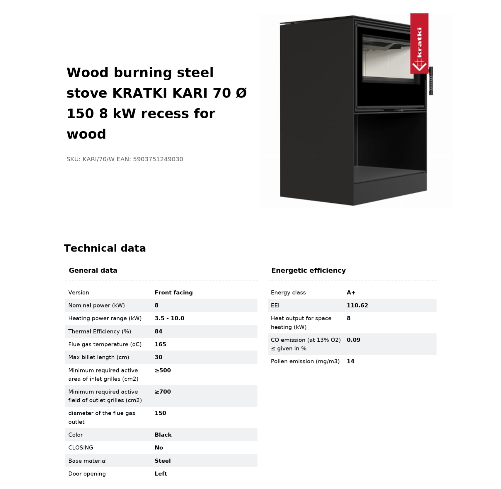 KRATKI KARI 70 Steel Wood Burning Stove 8 kW