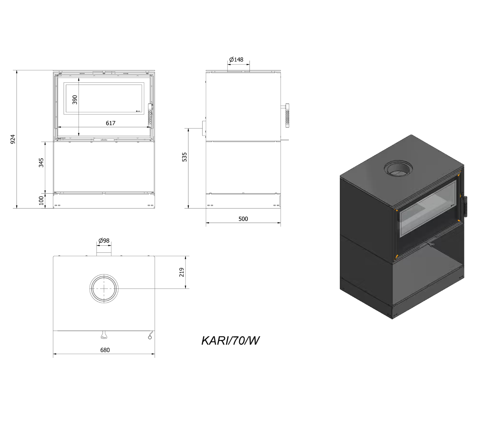 KRATKI KARI 70 Steel Wood Burning Stove 8 kW Ø150 – Modern, Efficient & Stylish Heating with Log Storage