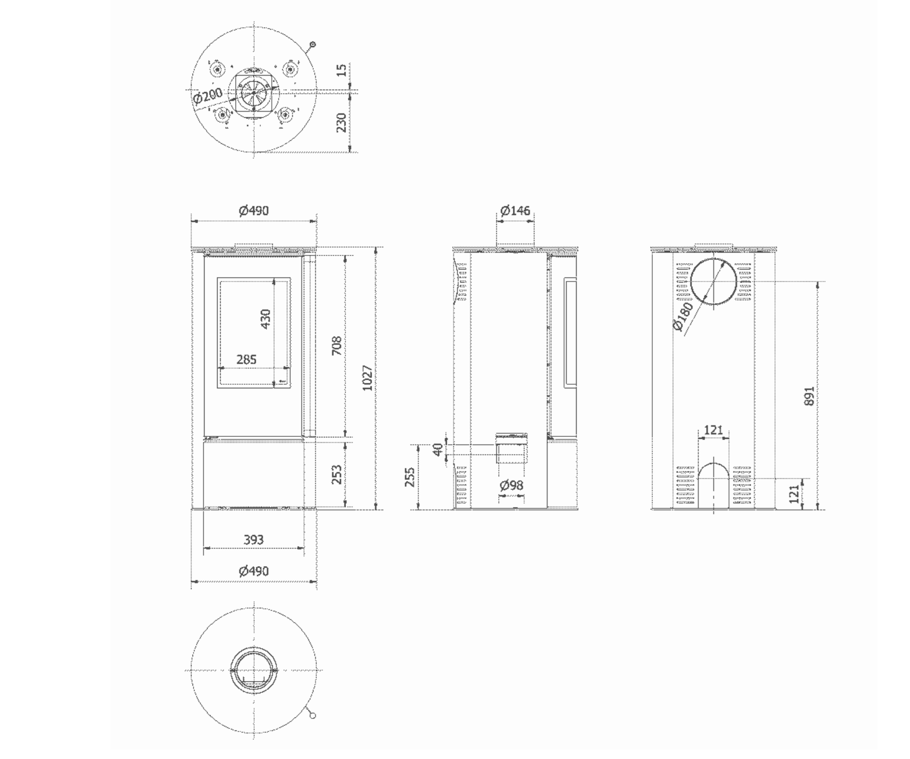 Flue Outlet Diameter (Ø150 mm) – Standard chimney compatibility