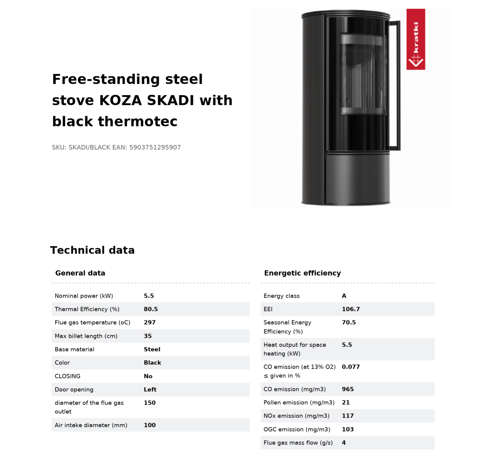 The KRATKI KOZA SKADI is a stylish freestanding wood burning stove designed for modern living. Combining minimalist aesthetics with advanced combustion technology, it delivers efficient and экологiczne heating while enhancing your interior with a sleek, contemporary look. Built for performance and comfort, SKADI ensures optimal heat output, low emissions, and long-lasting warmth—perfect for energy-efficient homes.