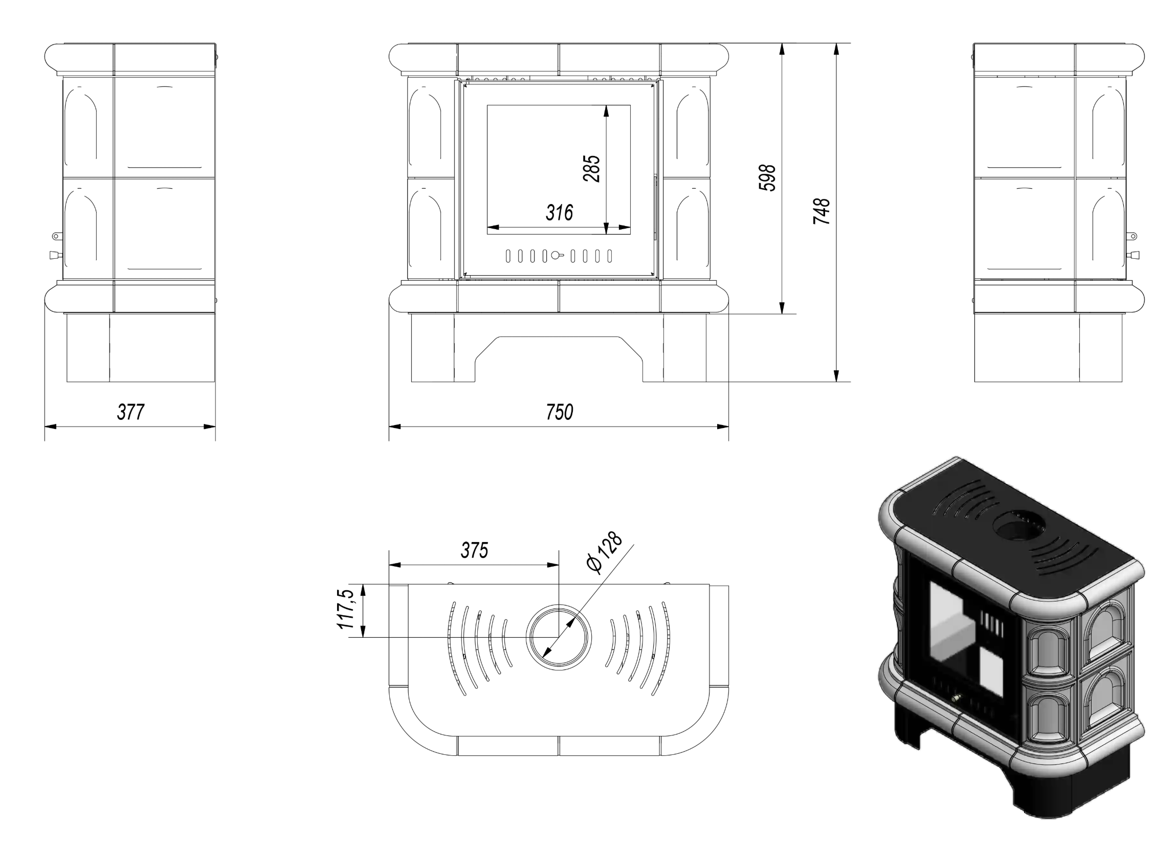 Flue Outlet Diameter (Ø130 mm) – Compatible with standard chimney systems