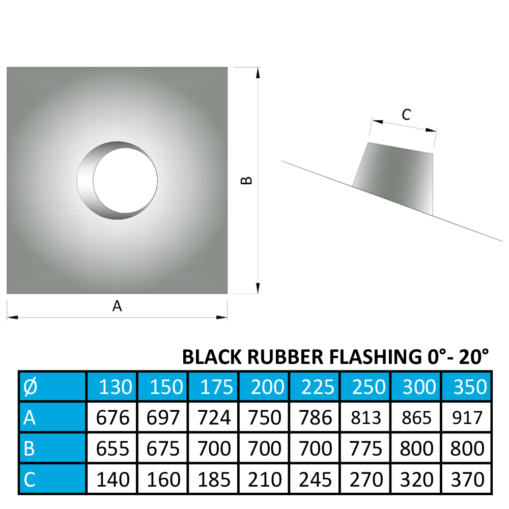 Lead Free Flashing 0° to 20° SS Cone Black Base – Ø 200 OD (150mm ID)