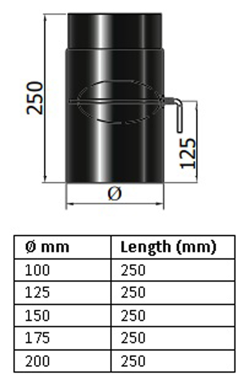 Pipe with Damper – Ø 125mm (5inch) / 250mm black matt