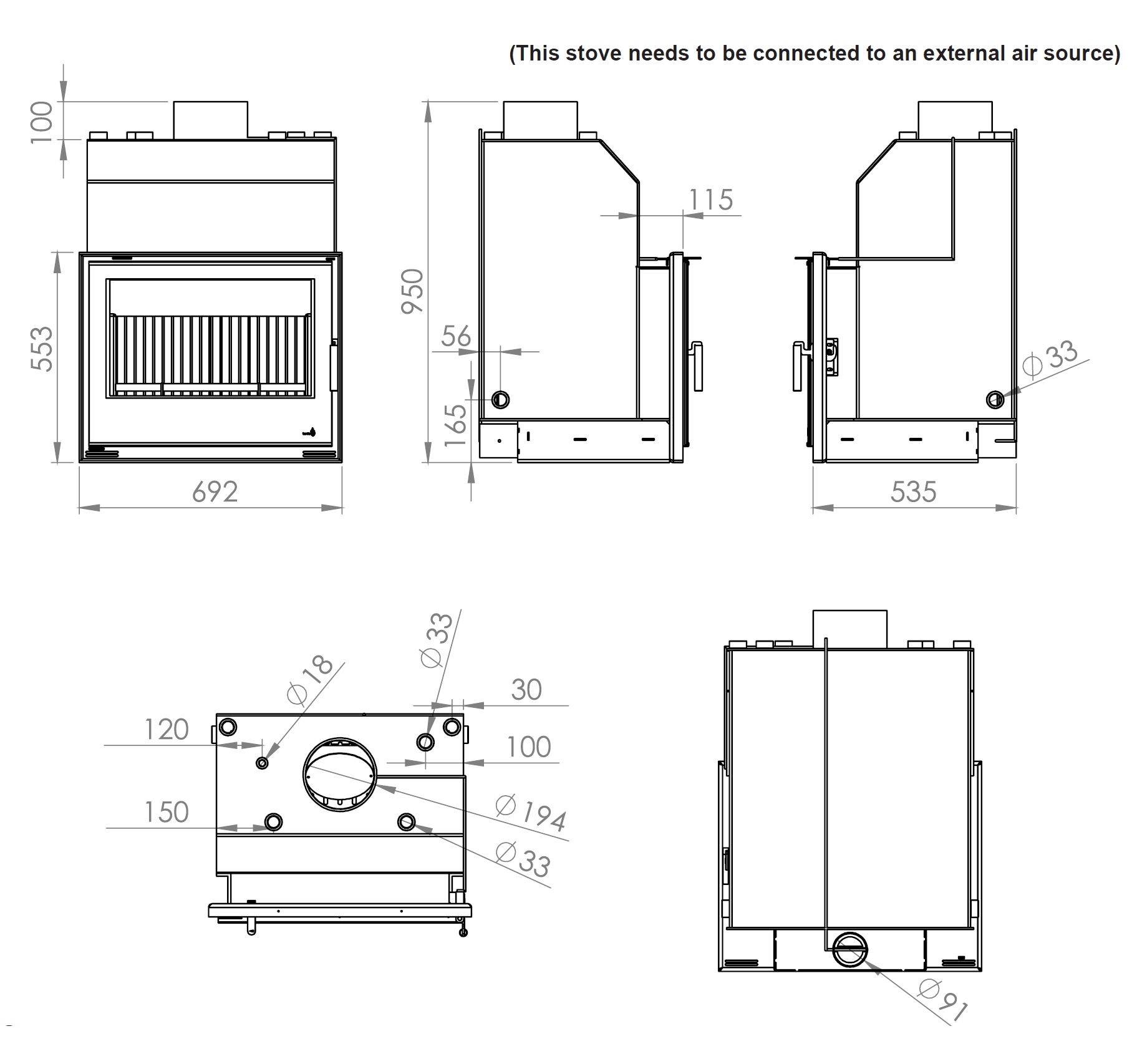 Flue Size: 200mm /8inch