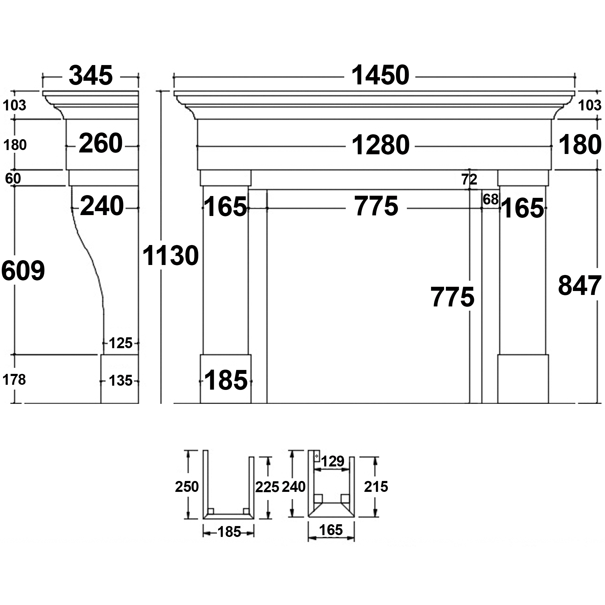 The Faro has a prominent straight mantle and thick curved side columns. Its solid construction and classical beauty will add sophistication to any room.