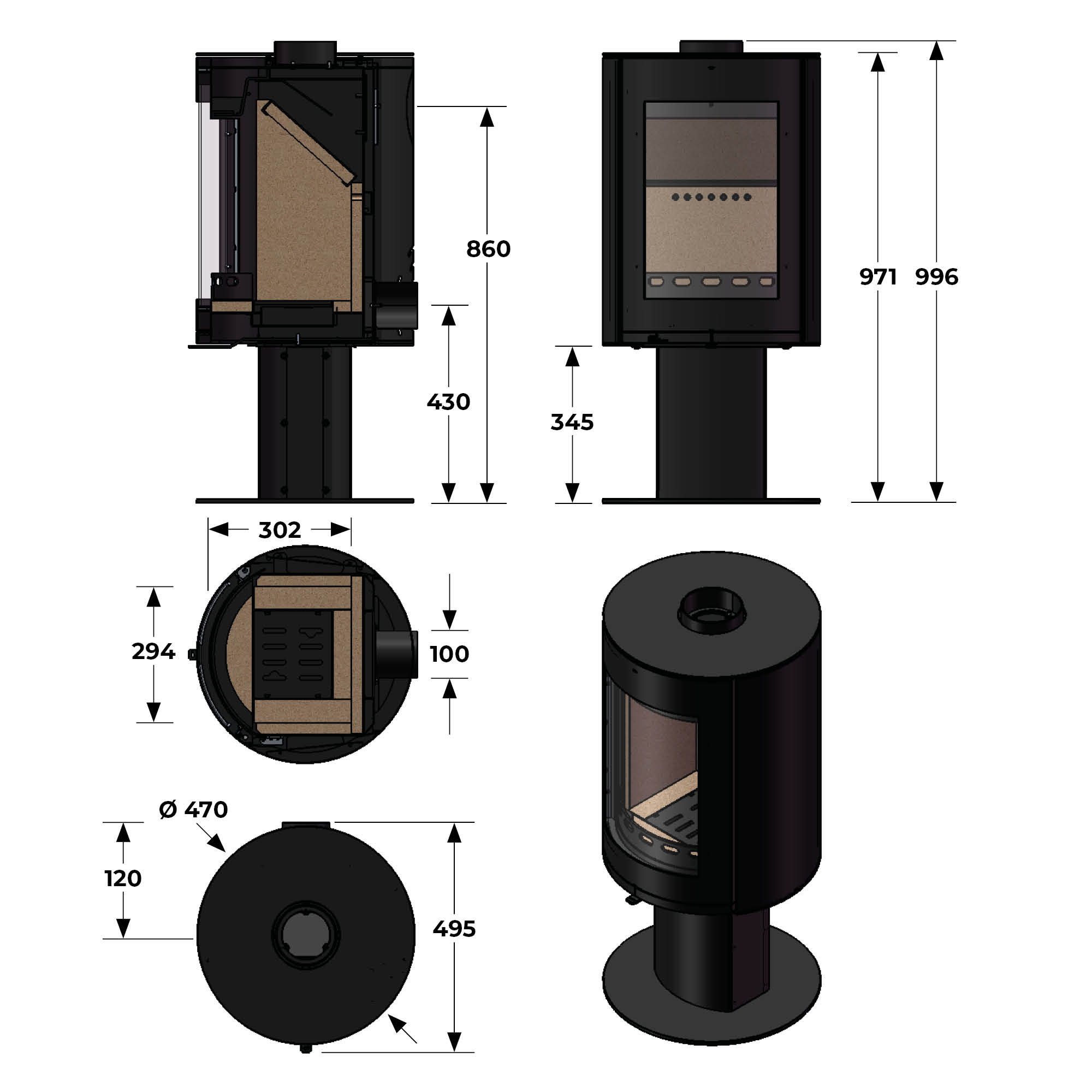 Oval Rondo 4.9kW Stove with Pedestal, Round Elipse