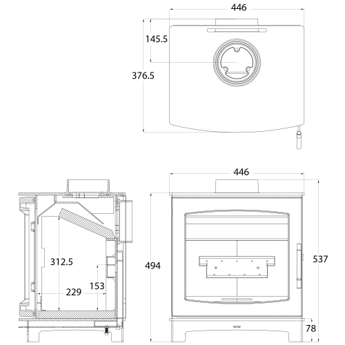 - Installer-Friendly: The Small Tinderbox Wood Stove is designed with convenience in mind, offering a 125mm outlet at both the top and rear for versatile installation.