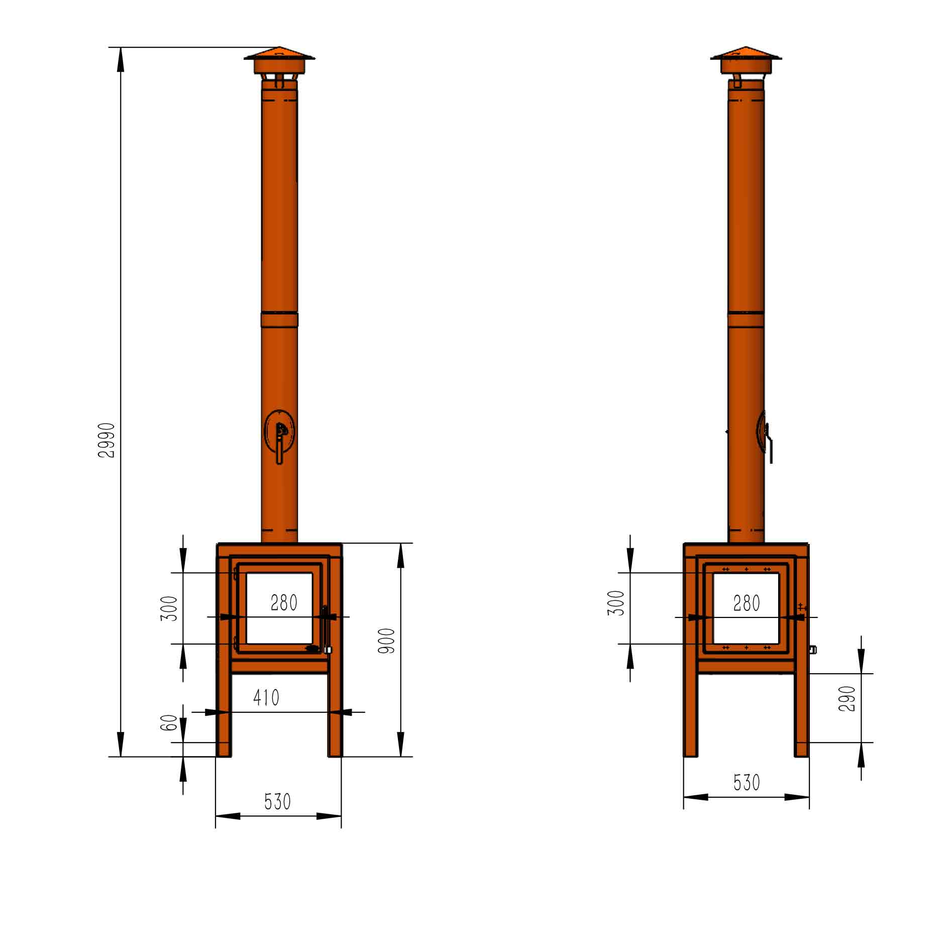 Width: 530mm (2990mm with Chimney)