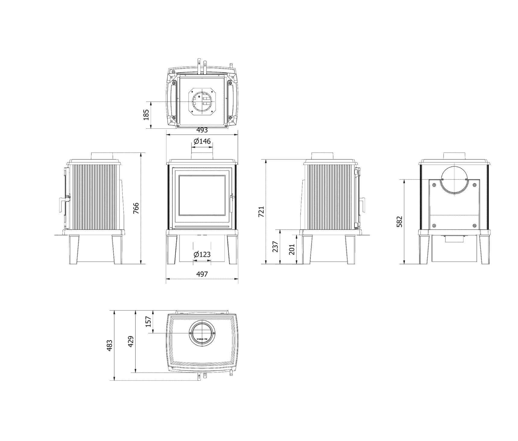 Flue Outlet Diameter (Ø150 mm) – Standard chimney compatibility
