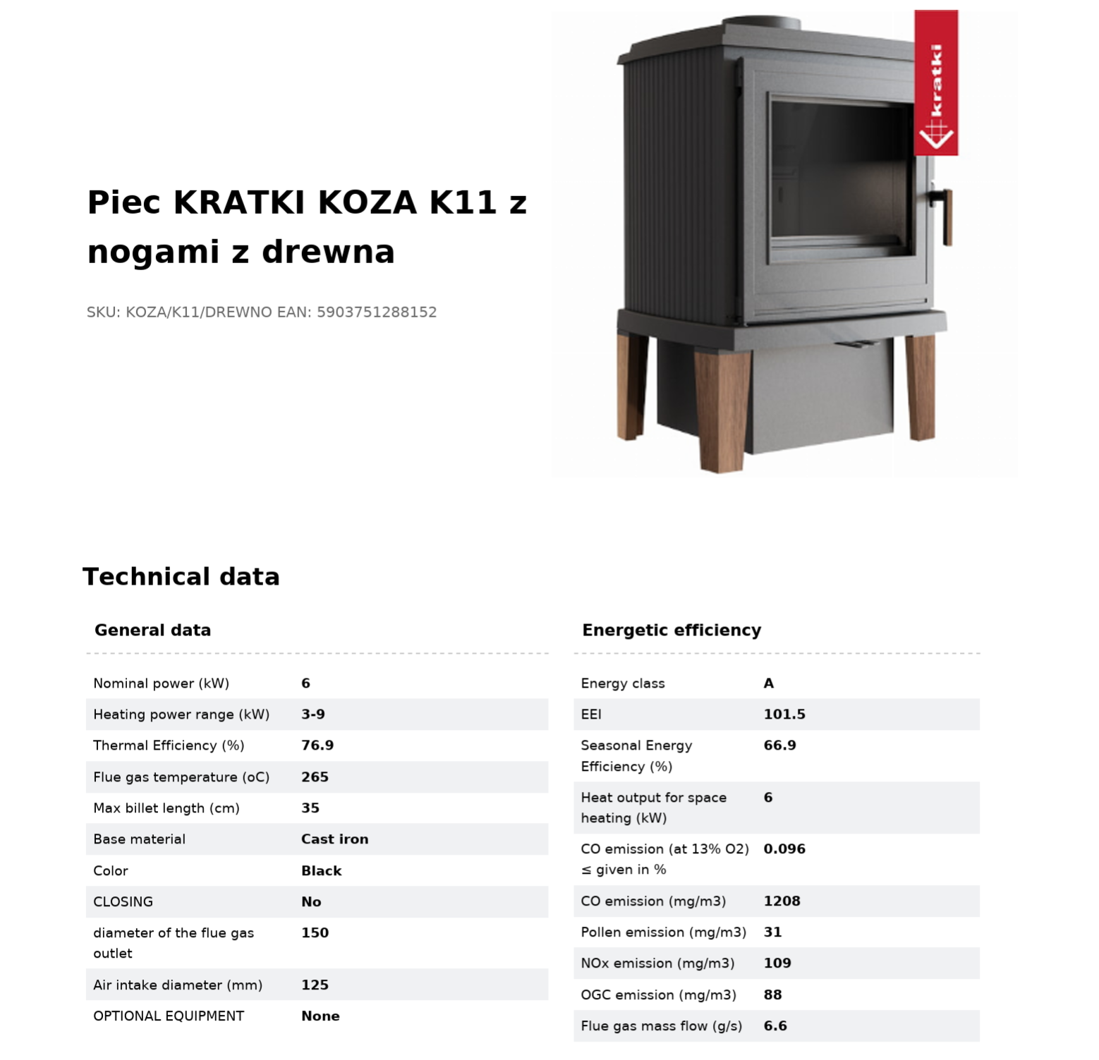 The KRATKI KOZA K11 is a beautifully designed wood burning stove that combines modern aesthetics with high-performance heating. Featuring elegant wooden legs, it stands out as a stylish centrepiece while delivering efficient and eco-friendly warmth. Designed with advanced combustion technology and high-quality materials, the K11 ensures excellent heat output, clean burning, and user-friendly operation—perfect for contemporary homes, including those with ventilation systems.