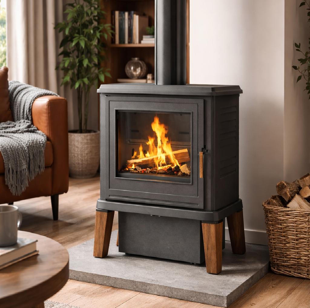 KRATKI K11 Wood Burning Stove with Wooden Legs – Modern, Efficient & Stylish Heating